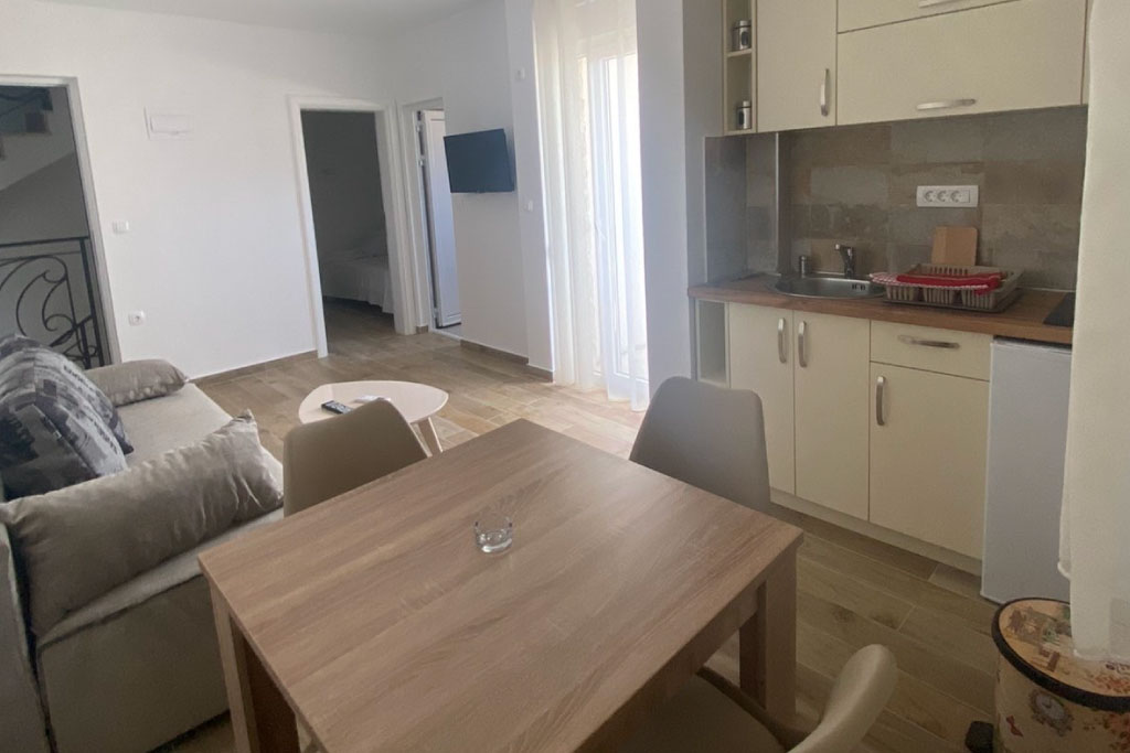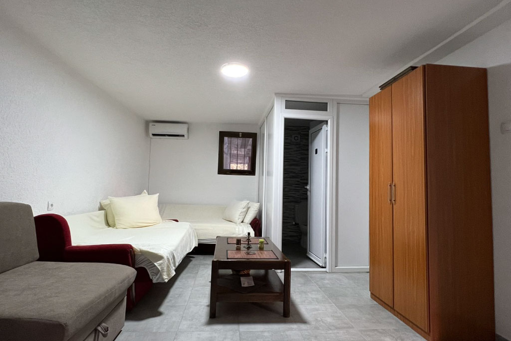 – Apartman sa 2 spavaće sobe i terasom (sopstveno kupatilo van jedinice, zajednički ulaz sa vlasnikom)